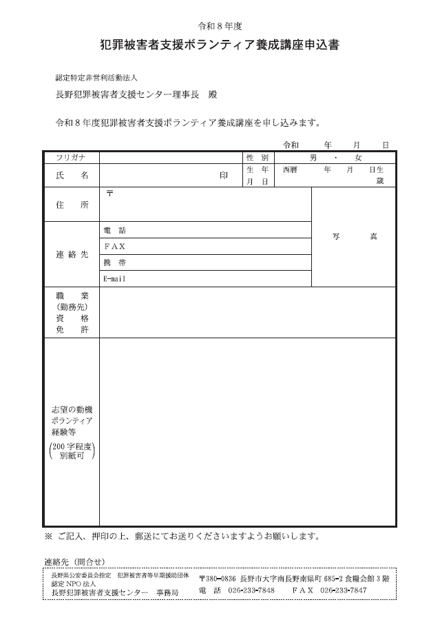 被害者支援活動に関心がある方勉強をしたいという方のお申込み、